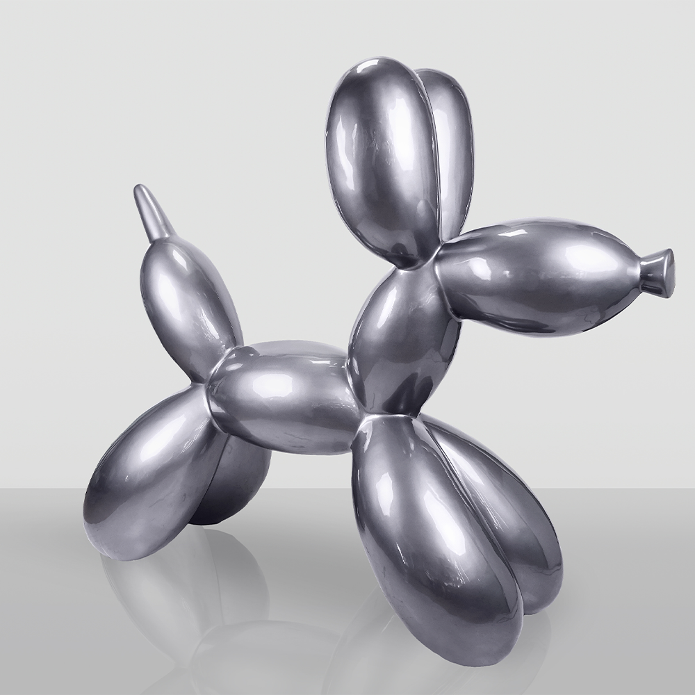 Odkryj wyjątkową dekorację, która doda blasku każdemu wnętrzu! Balonowy Pies Duża Figura Dekoracyjna w kolorze srebrnym to nie tylko efektowny element wystroju, ale także doskonały sposób na przyciągnięcie uwagi gości. Wykonana z laminatu szklanego PWS, figura łączy w sobie nowoczesny design z wysoką jakością wykonania, co sprawia, że jest idealnym wyborem do galerii, na wydarzenia artystyczne, a także do sklepów i reklam.