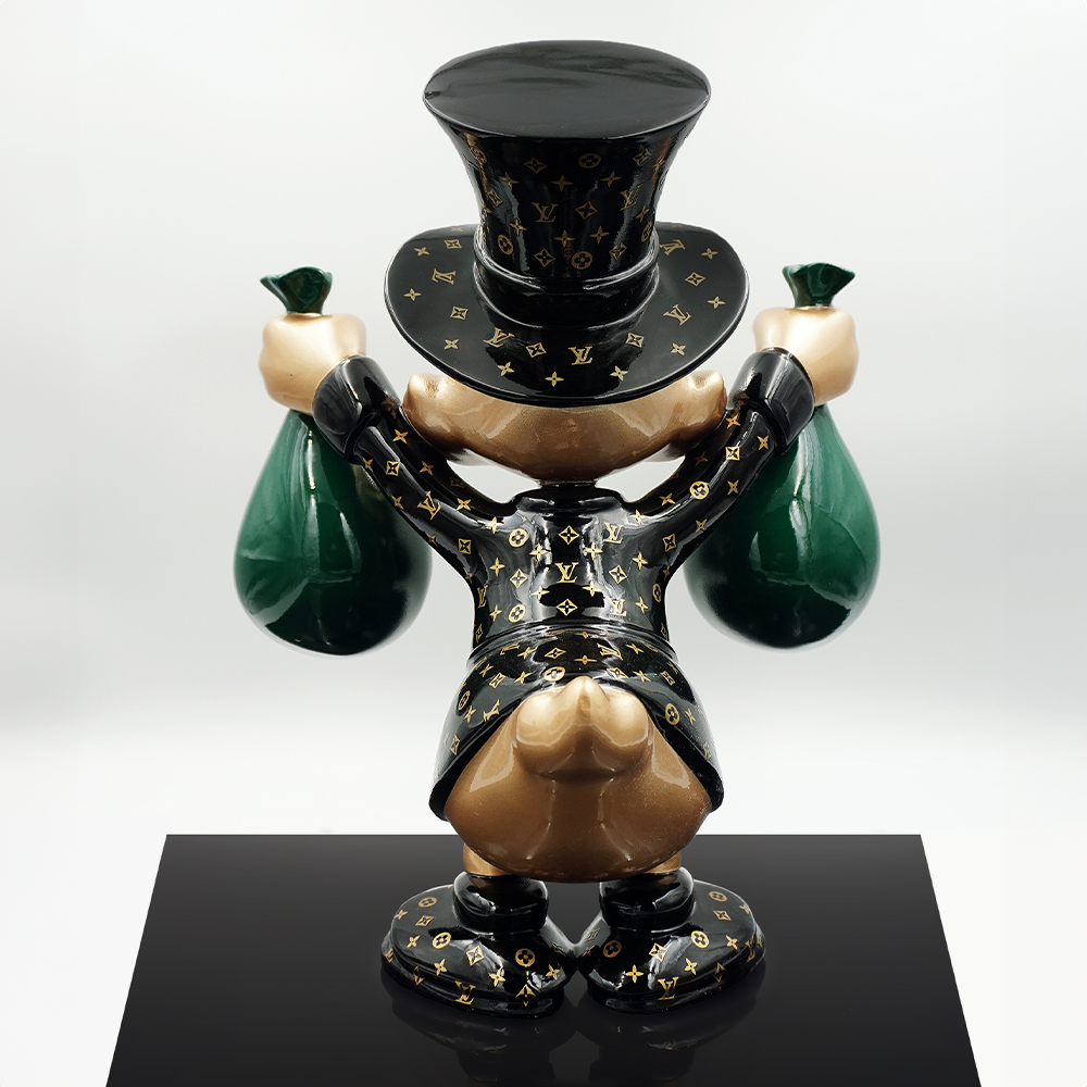 Mini Kaczor Sknerus McKwacz trzyma w rękach dwa worki z pieniędzmi, co symbolizuje jego zamiłowanie do bogactwa i przygód. Ta figura nie tylko przyciąga wzrok, ale także staje się doskonałym tematem do rozmów. Może być używana jako dekoracja w salonie, biurze, a nawet w parku zabaw, gdzie z pewnością zachwyci dzieci i dorosłych.