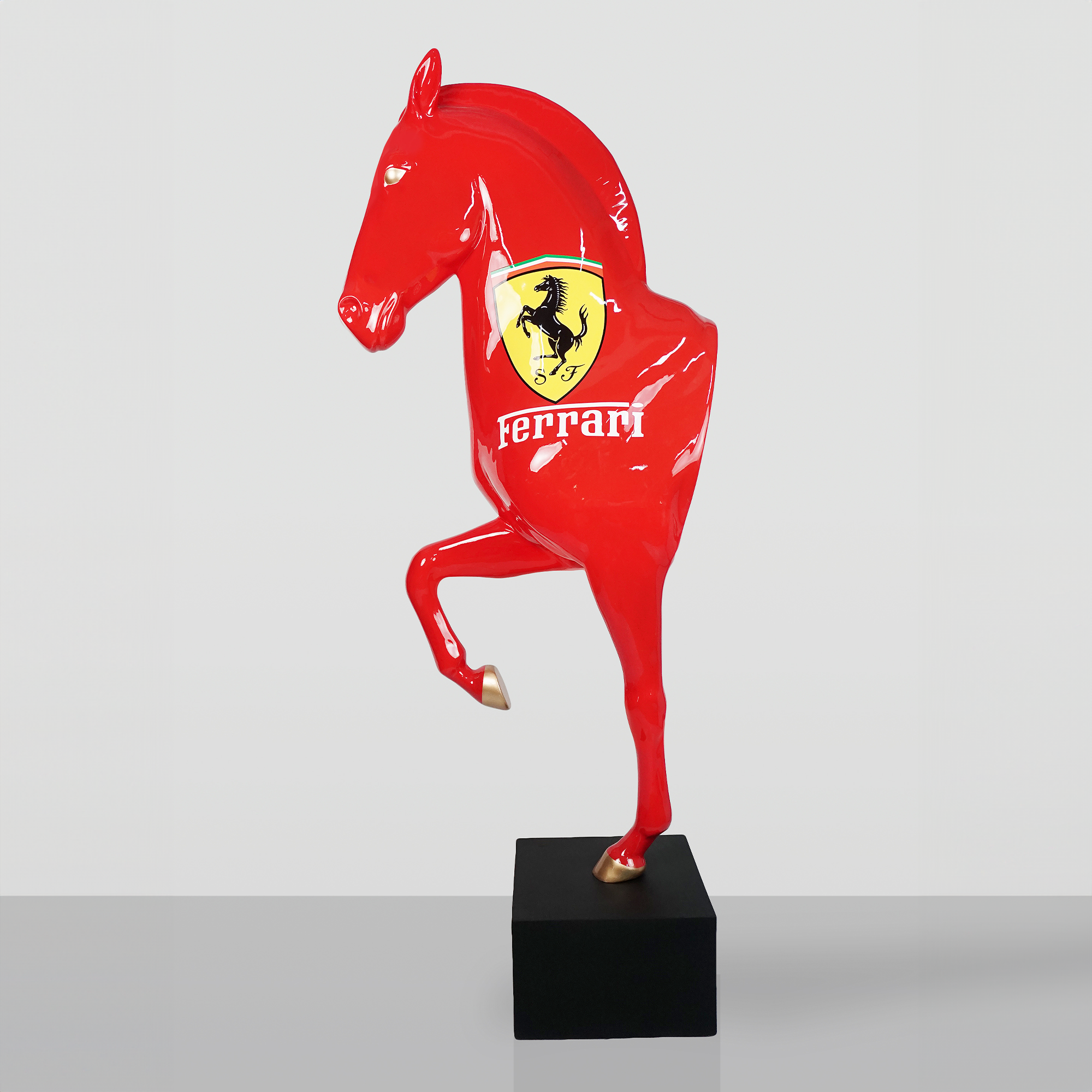 Ta imponująca rzeźba w naturalnym rozmiarze to wyjątkowa dekoracja, która doda charakteru każdemu wnętrzu. Wykonana z trwałego laminatu szklanego PWS, figura czerwonego konia Ferrari osadzona jest na solidnym, czarnym postumencie o wysokości 30 cm, co zapewnia stabilność i efektowną ekspozycję. Całkowita wysokość rzeźby to 255 cm, co sprawia, że jest ona doskonale widoczna i przyciąga wzrok.